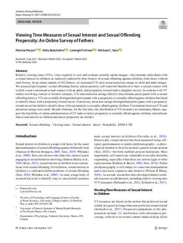 Title: | Viewing Time Measures of Sexual Interest and Sexual Offending Propensity: An Online Survey of Fathers |