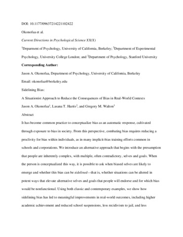 | Title: | Sidelining Bias: A Situationist Approach to Reduce the Consequences of Bias in Real-World Contexts |