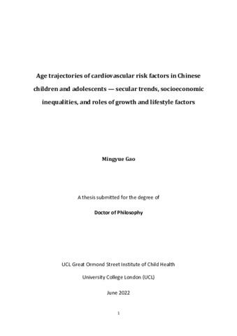 Age trajectories of cardiovascular risk factors in Chinese children and adolescents — secular trends, socioeconomic inequalities, and roles of growth and lifestyle factors.