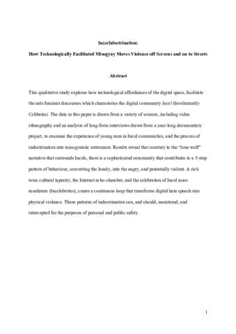 Title: | In(cel)doctrination: How technologically facilitated misogyny moves violence off screens and on to streets |