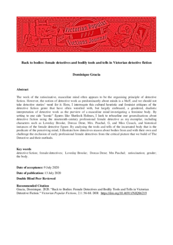 Title: | Back to bodies: female detectives and bodily tools and tells in Victorian detective fiction |