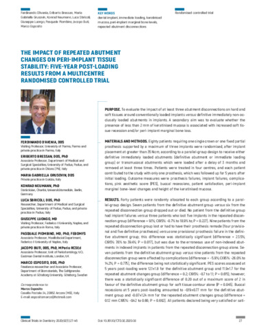 Title: | The Impact of Repeated Abutment Changes on Peri-implant Tissue Stability: Five-year Post-loading Results From a Multicentre Randomised Controlled Trial |