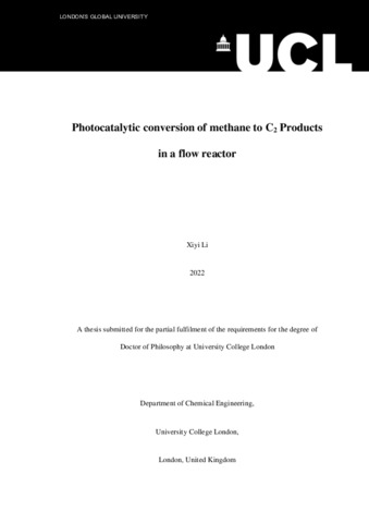 Title: | Photocatalytic conversion of methane to C2 Products in a flow reactor |
