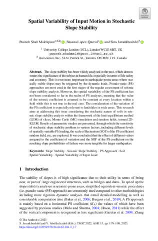 Keywords: | Slope Stability; Seismic Slope Stability; PS Approach; Soil Spatial Variability; Spatial Variability of Input Load |
