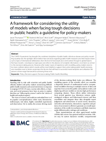Title: | A framework for considering the utility of models when facing tough decisions in public health: a guideline for policy-makers |