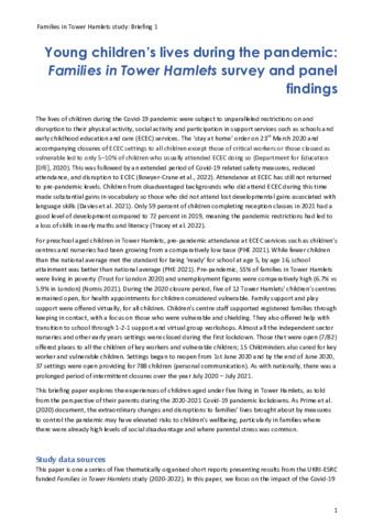 Title: | Young children’s lives during the pandemic: Families in Tower Hamlets survey and panel findings |