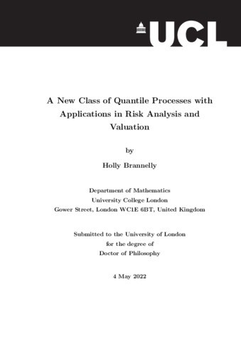 Title: | A New Class of Quantile Processes with Applications in Risk Analysis and Valuation |