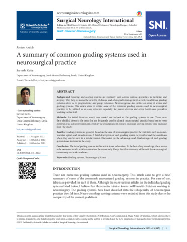 Title: | A summary of common grading systems used in neurosurgical practice |