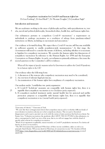 Forsberg, Black, Douglas, Pugh, Compulsory Vaccination for Covid-19 JCHR written evidence.pdf - Published Version Download (178kB) | Preview |