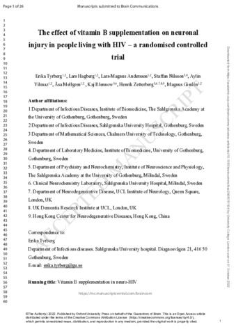 Title: | The effect of vitamin B supplementation on neuronal injury in people living with HIV – a randomised controlled trial |