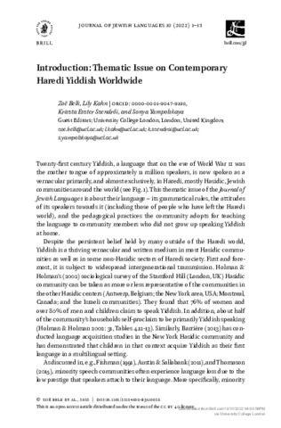 Title: | Introduction: Thematic Issue on Contemporary Haredi Yiddish Worldwide |