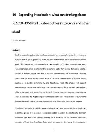 Title: | Expanding intoxication: what can drinking places (c.1850-1950) tell us about other intoxicants and other sites? |