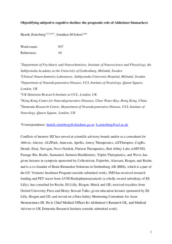 Objectifying Subjective Cognitive Decline: The Prognostic Role of Alzheimer Biomarkers.