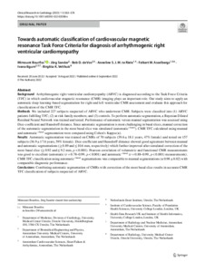 | Title: | Towards automatic classification of cardiovascular magnetic resonance Task Force Criteria for diagnosis of arrhythmogenic right ventricular cardiomyopathy |