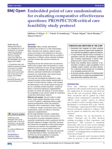 Title: | Embedded point of care randomisation for evaluating comparative effectiveness questions: PROSPECTOR-critical care feasibility study protocol |