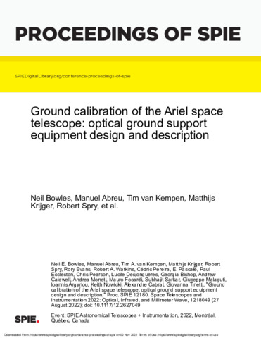 | Title: | Ground calibration of the Ariel space telescope: optical ground support equipment design and description |