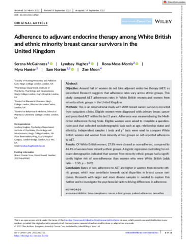 Adherence to adjuvant endocrine therapy among White British and ethnic minority breast cancer survivors in the United Kingdom.