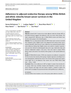 Title: | Adherence to adjuvant endocrine therapy among White British and ethnic minority breast cancer survivors in the United Kingdom |