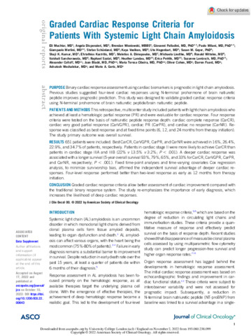 Title: | Graded Cardiac Response Criteria for Patients With Systemic Light Chain Amyloidosis |