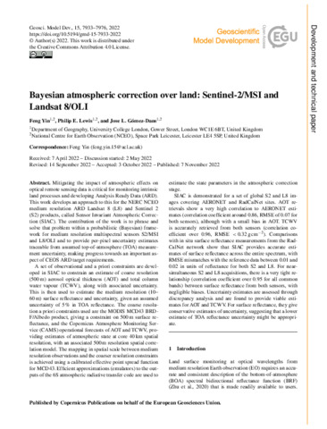 Bayesian atmospheric correction over land: Sentinel-2/MSI and Landsat 8/OLI.