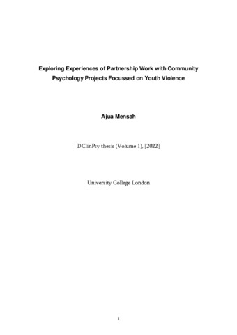 Title: | Exploring Experiences of Partnership Work with Community Psychology Projects Focussed on Youth Violence |
