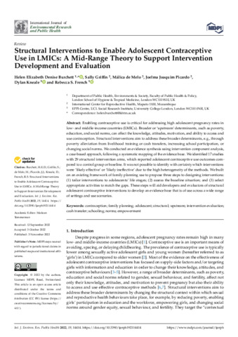| Title: | Structural Interventions to Enable Adolescent Contraceptive Use in LMICs: A Mid-Range Theory to Support Intervention Development and Evaluation |