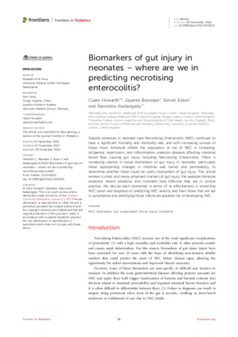 | Title: | Biomarkers of gut injury in neonates – where are we in predicting Necrotising Enterocolitis? |