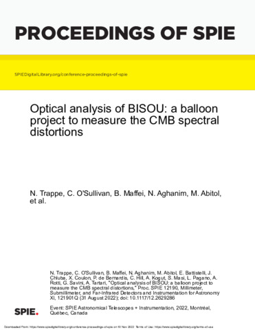 Title: | Optical analysis of BISOU: A balloon project to measure the CMB spectral distortions |