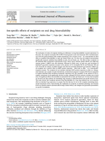 Title: | Sex-specific effects of excipients on oral drug bioavailability |