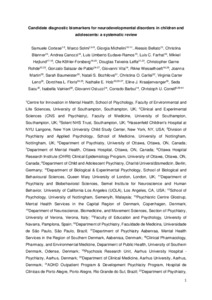 Candidate diagnostic biomarkers for neurodevelopmental disorders in children and adolescents: a systematic review.