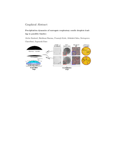 Title: | Precipitation dynamics of surrogate respiratory sessile droplets leading to possible fomites |