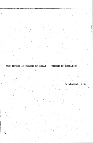 This thesis attempts to study the effect on Moslem life, in general , and , Arab countries in particular, of the European influence in its several aspects, 'especially viewed in education. For--this purpose the thesis is divided into three main, parts, having for their subject: the study of the background, the. study of the relations between Europe and Islam, and the : impact on education. Part I is devoted to the examination of the cultural, and,. educational background of Islamic, life and is sub-divided into the following chapters: - I: --Definition-of-terms: in which the exact connotation, of the terms Islamic and Arabic is defined. II. Islam: its tenets and-cultural content. III. Islamic Society - its composition and features. IV. Moslem Education: its original, development, traditions and, practices. Part, 2., -which deals with the' history of the relations between the World of Islam and Europe; has for object the study, of, those contacts with a view to finding out whether they were, such as to lead _to an ensuing - of " influences from -,, _Europe to Islam and at which period, that had the greatest -opportunity to operate. It also is sought to depict the nature of this influence in the light of the circumstances'and"the effect that had on Moslem life. This part is sub-divided into the. following chapters: - I. The Early Contacts in the "Middle Ages. ', II. 'The Sixteenth Century: The Beginning of Trade Pacts and closer relations. ' III: The Nineteenth Century: The century in which European, influence had its widest chance to bear on Moslem life-politically, socially, economically and culturally. IV. The, Two Worlds Compared: Islamic, and European Society in the 19th century. V. Reaction and . Responses - The effect on Moslem life': Part 3, The'Impaeton Education. This part reviews and discusses the several educational " activities ` set afoot-under the , influence of ; Europe, the ' nature of their conception, the aims of their institution and. development as well as the effect Europeanization had on the traditional systems of education, It duals with this subject in the followin , chapters: - I. " The Place of Education in ttn influcncoe,, and. what prirory objects it served. II. 1 The Early Educational reforms: t: odorn-Hducat1onal beßännin, 3s . In Turkey and EZypt.. III., Fducation under Foreign'Control: -'. I*"' The prototypes of Uritich and French, -policico ., in' India and 4 l, goria. it. British Educational Policies in 'Egypt, Iraq, and Palestine. ` ili: French Educat Tonal Policies in S yria and ;. ' .. the Lebanon. IV. The Present Picture: The Return of Native Qontrol.