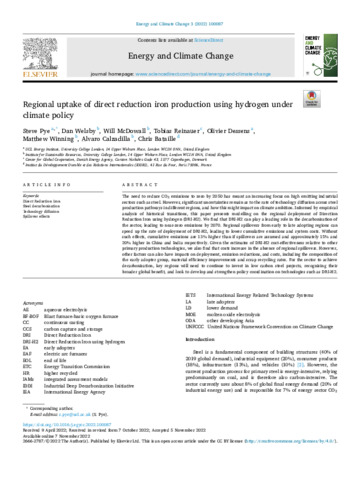 Regional uptake of direct reduction iron production using hydrogen under climate policy.