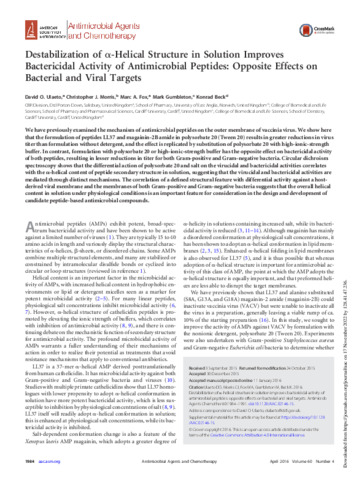 Title: | Destabilization of α-Helical Structure in Solution Improves Bactericidal Activity of Antimicrobial Peptides: Opposite Effects on Bacterial and Viral Targets |
