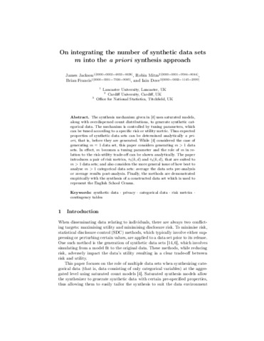 Title: | On Integrating the Number of Synthetic Data Sets m into the a priori Synthesis Approach |