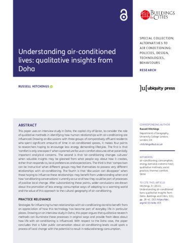 | Title: | Understanding air-conditioned lives: qualitative insights from Doha |
