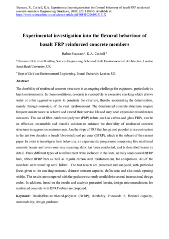 | Title: | Experimental investigation into the flexural behaviour of basalt FRP reinforced concrete members |