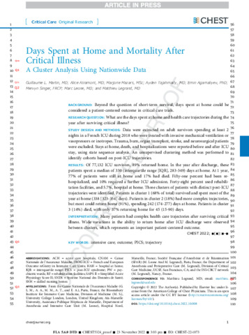 Days Spent at Home and Mortality After Critical Illness: A Cluster Analysis Using Nationwide Data.