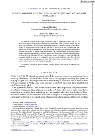 Econometrica - 2022 - Moll - Uneven Growth Automation s Impact on Income and Wealth Inequality.pdf - Published Version Download (1MB) | Preview |
