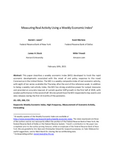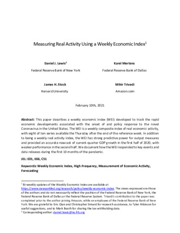 Keywords: | Weekly Economic Index, High Frequency, Measurement of Economic Activity, Forecasting |