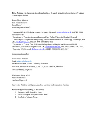 | Title: | Artificial intelligence in the clinical setting: Towards actual implementation of reliable outcome predictions |