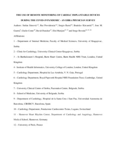 Bebiano Da Providencia E Costa_THE USE OF TELEMONITORING OF CARDIAC IMPLANTABLE DEVICES DURING COVID_SB_SS_RP_SS-2.pdf - Accepted Version Download (540kB) | Preview |