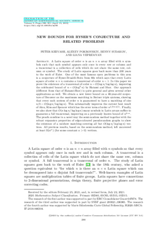 Title: | New bounds for Ryser’s conjecture and related problems |