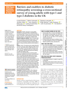 Barriers and enablers to diabetic retinopathy screening: a cross-sectional survey of young adults with type 1 and type 2 diabetes in the UK.
