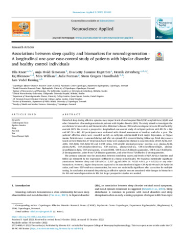Associations between sleep quality and biomarkers for neurodegeneration - A longitudinal one-year case-control study of patients with bipolar disorder and healthy control individuals.