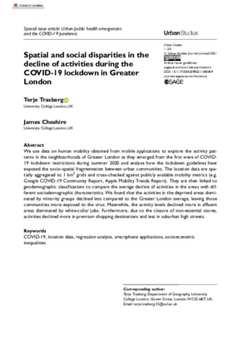 Title: | Spatial and social disparities in the decline of activities during the COVID-19 lockdown in Greater London |