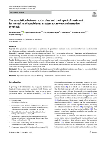 Title: | The association between social class and the impact of treatment for mental health problems: a systematic review and narrative synthesis |