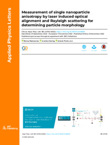 Title: | Measurement of single nanoparticle anisotropy by laser induced optical alignment and Rayleigh scattering for determining particle morphology |