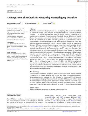 | Title: | A comparison of methods for measuring camouflaging in autism |