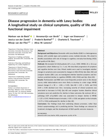 Title: | Disease progression in dementia with Lewy bodies: A longitudinal study on clinical symptoms, quality of life and functional impairment |